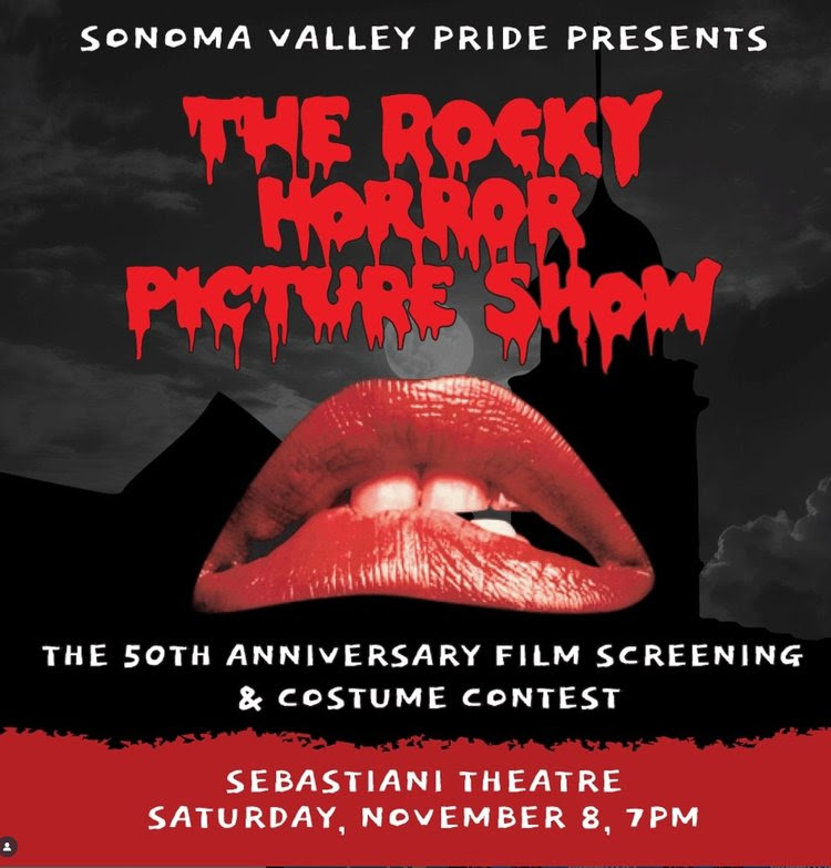 Sonoma Valley Pride is inviting the community to celebrate a cult classic in true over-the-top style! On Saturday, November 8, the historic Sebastiani Theatre will host a screening of The Rocky Horror Picture Show in honor of the film’s 50th anniversary. Doors open at 7:00 PM, with a costume contest kicking off at 7:30 PM, where prizes will be awarded to the best dressed of the night. The movie screening will start at 8:00 PM.