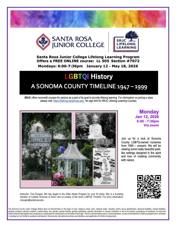 Local/ News New Semester of Free Online Sonoma County LGBT+ History Class Starts Monday Gary Carnivele January 5, 2026