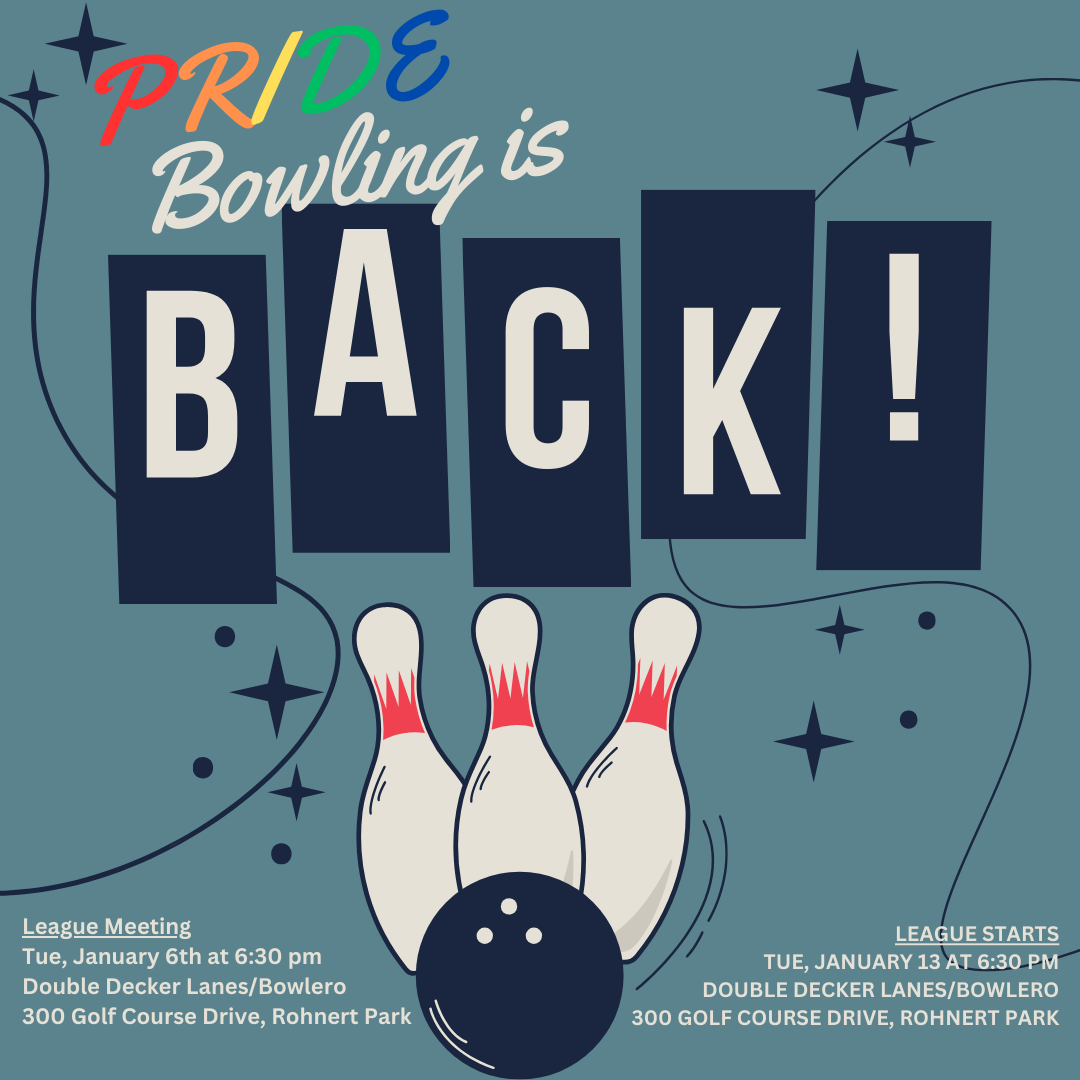As the winter Pride Bowling League season approaches, we wanted to share important upcoming dates and information. During the fall season, our league had 30 teams (a record for Pride bowling). Moving into the winter season, we have 29 returning teams and can increase to 32 teams. Since another league bowls on Tuesday nights, we cannot go beyond 32 total teams.