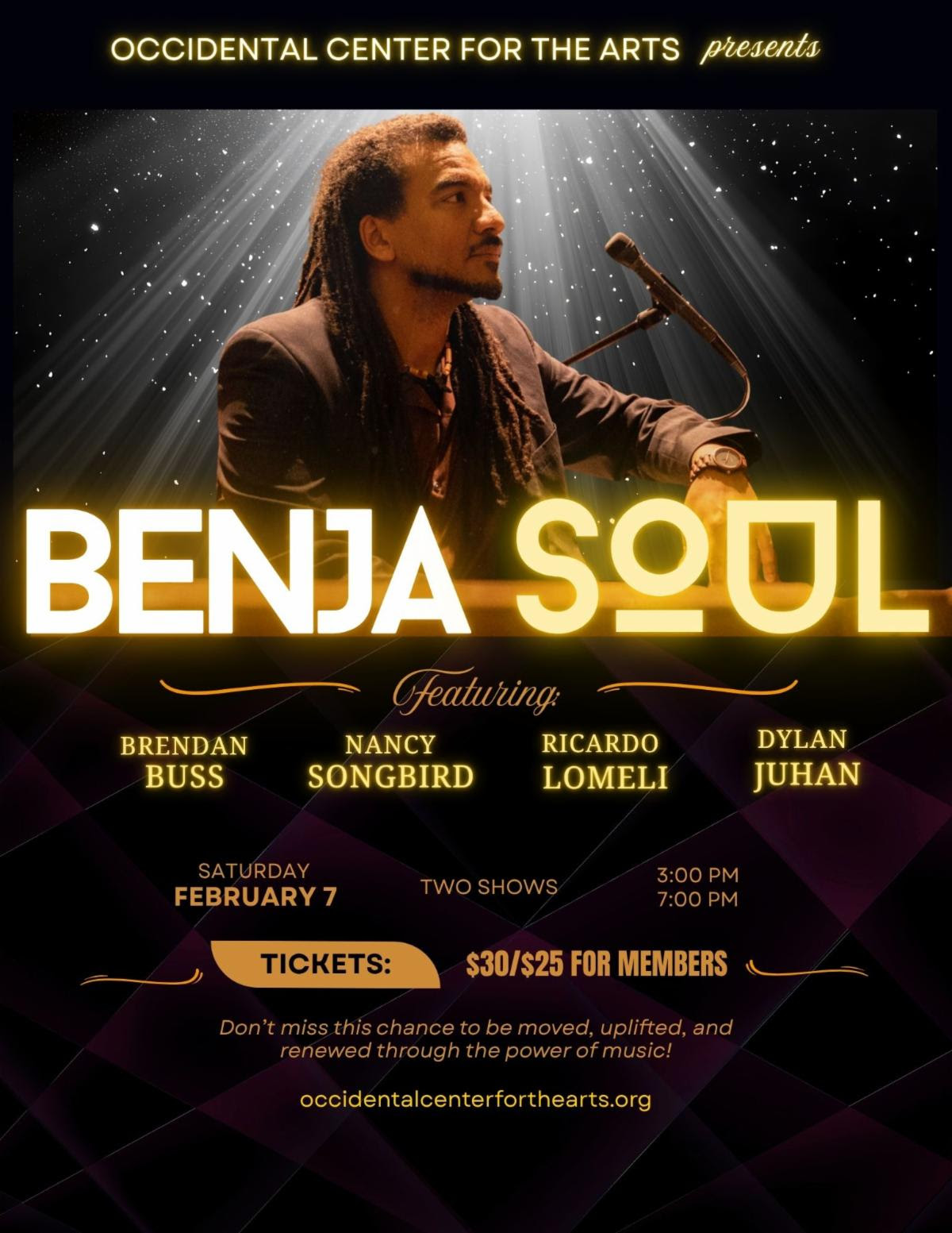 Arts & Entertainment/ Music Benja Soul Performs at Occidental Center for the Arts February 7 Gary Carnivele February 2, 2026