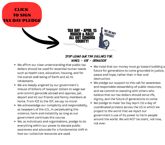 Tax Day March and Rally Happens Wed Apr 15 4 – 6 PM at Federal/IRS Building in Santa Rosa